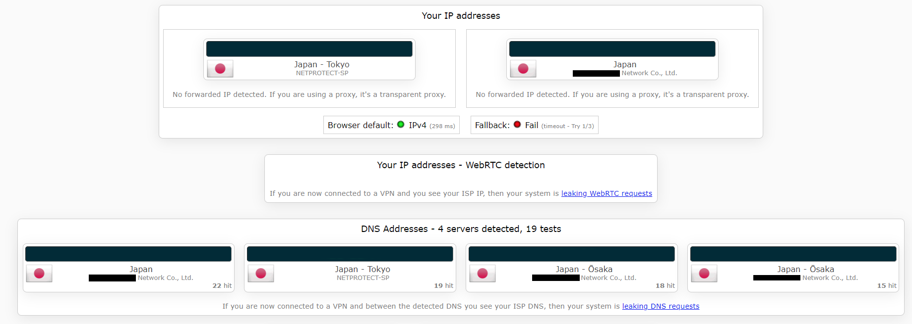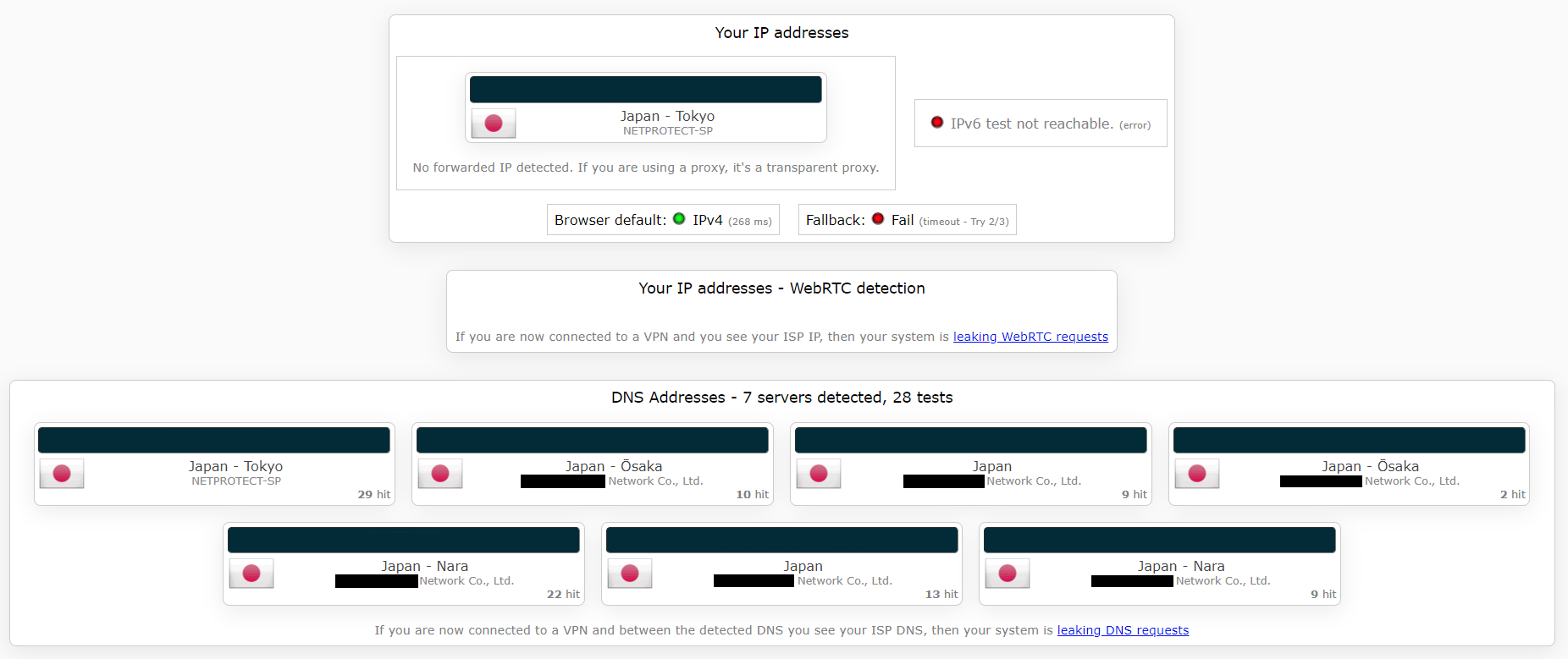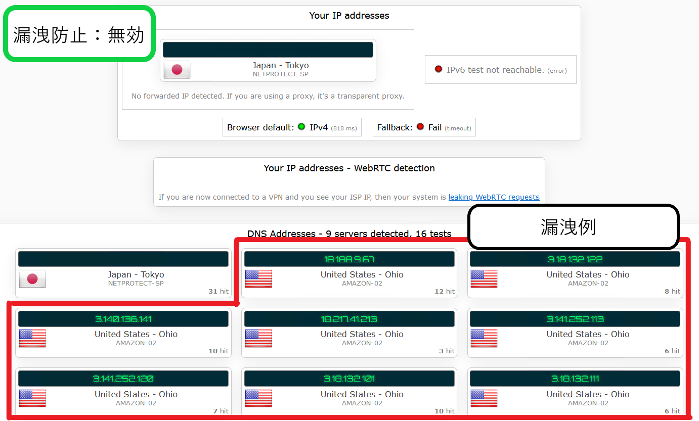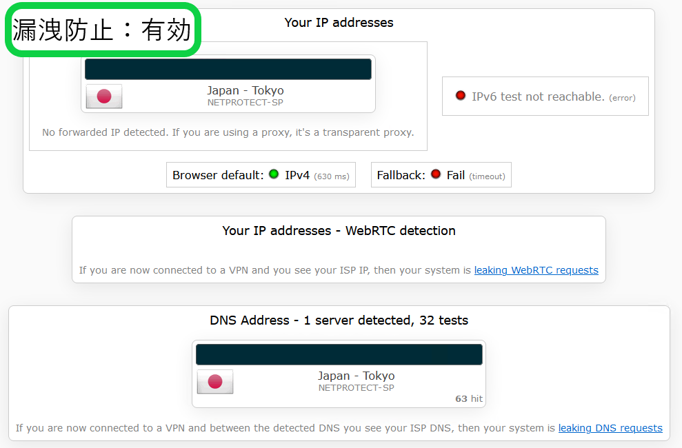 | 検証サイト | IPleak.net |